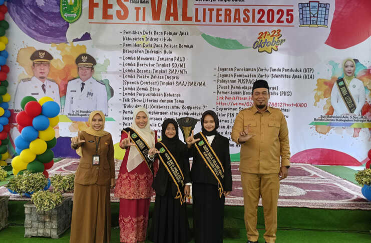 RENGAT (RIAUPOS.CO) – Dinas Perpustakaan dan Kearsipan Kabupaten Indragiri Hulu (Inhu) kembali menggelar Festival Literasi 2025 yang berlangsung meriah dan penuh semangat literasi. Acara ini dibuka langsung oleh Bupati Inhu, Ade Agus Hartanto SSos MSi, didampingi Bunda Literasi Inhu, Suci Rahmiani SSos MSi, pada Selasa (21/10).