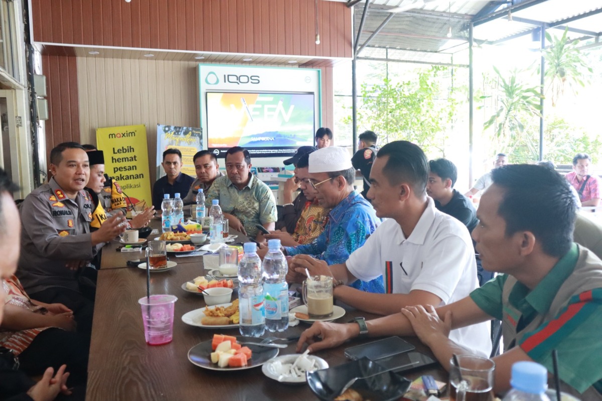 Kapolres Kampar AKBP Ronald Sumaja Coffee Morning bersama KPU Kampar, Bawaslu Kampar dan Tim Pemenangan Paslon Bupati dan Wakil Bupati di Kecamatan Bangkinang Kota, Kabupaten Kampar, Jum'at (1/11/2024)