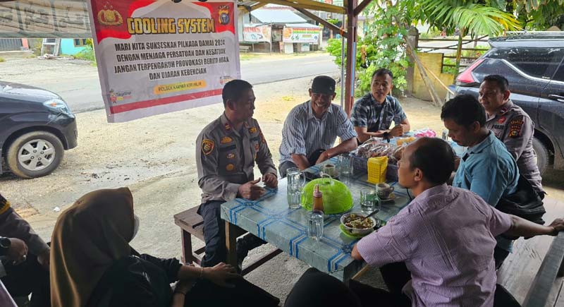 KAMPAR KIRI HILIR (RIAUPOS.CO) – Jaga harapan masyarakat agar pilkada berjalan aman, Kapolsek Kampar Kiri Hilir IPTU Irwan Fikri bersama jajarannya sambangi masyarakat Sungai Pagar lewat cooling system.