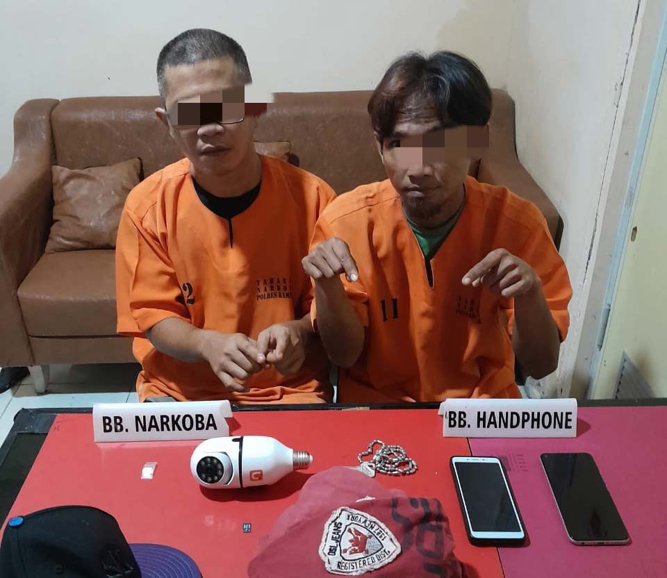 Kasat Narkoba menjelaskan, penangkapan keduanya di saksikan oleh perangkat desa setempat dan saat digeledah ditemukan satu paket diduga Narkotika jenis sabu yang dibungkus dengan Plastik bening yang sempat dibuang ketanah menggunakan tangan sebelah kiri.
