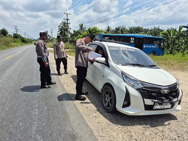 Polres Kampar menggelar razia penumpang kendaraan untuk memburu dua tersangka narkoba yang lari dari Rutan Mapolres yang belum tertangkap, Sabtu (17/5/2025). (Humas Polres Kampar untuk Riaupos.co)