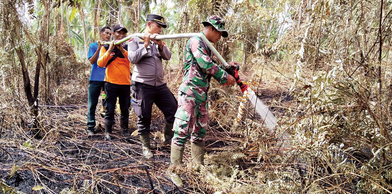 Sejumlah aparat dari stakeholder terkait melakukan pendinginan karhutla di Kecamatan Tebingtinggi yang berlangsung belum lama ini. (BPBD meranti untuk RiauPos.co)