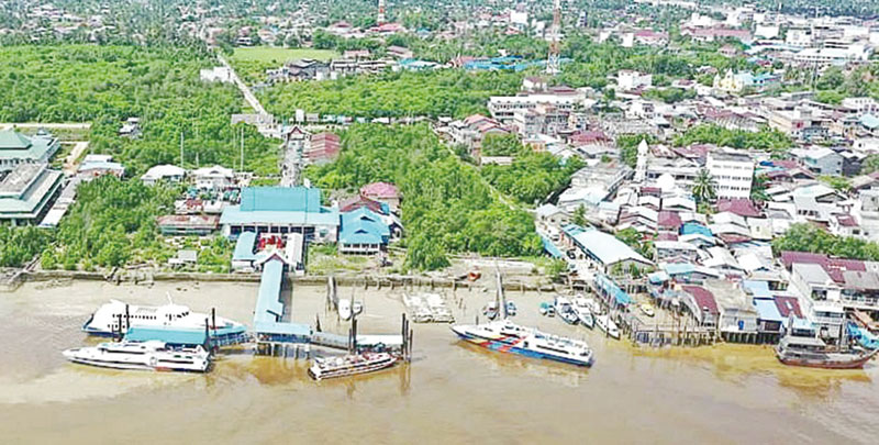 Pesisir Kota Selatpanjang sebagai pusat Kabupaten Kepulauan Meranti diambil dari udara, belum lama ini. (wira saputra/riau pos.co)