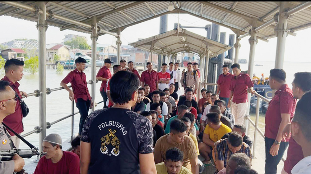 Lembaga Pemasyarakatan (Lapas) Kelas IIB Selatpanjang menerima 45 orang warga binaan pemasyarakatan (WBP) pindahan dari Lapas Kelas IIA Bagansiapiapi, Ahad (20/7/2025) sore. (WIRA SAPUTRA/RIAU POS)