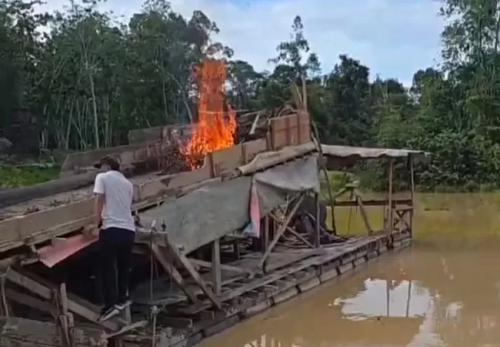 Saat tiba di lokasi sekitar pukul 15.00 WIB, petugas hanya menemukan tiga unit rakit PETI dalam kondisi tidak beroperasi dan ditinggalkan oleh pemiliknya. Polisi kemudian mengambil langkah tegas dengan merusak dan membakar seluruh rakit tersebut agar tidak bisa digunakan kembali oleh para pelaku.