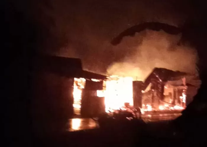 Sebuah kios papan milik warga Desa Sungai Keranji Kecamatan Singingi ludes akibat kebakaran yang terjadi Jumat (14/2/2025) dini hari.