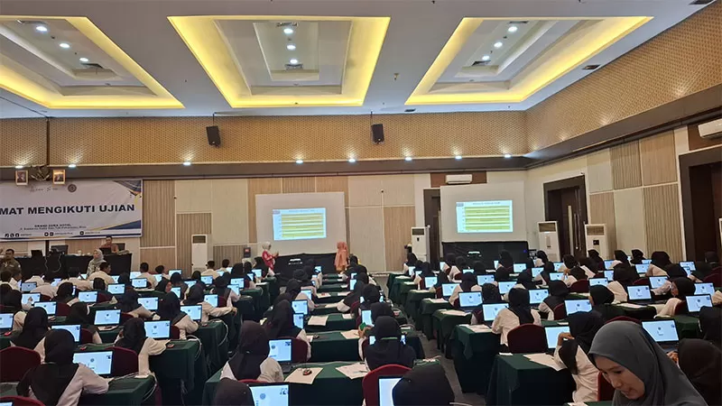Pelaksanaan ujian PPPK tahap II hari pertama di Hotel Grand Suka Pekanbaru, Sabtu (17/5/2025). (Foto BKPP Kuansing)