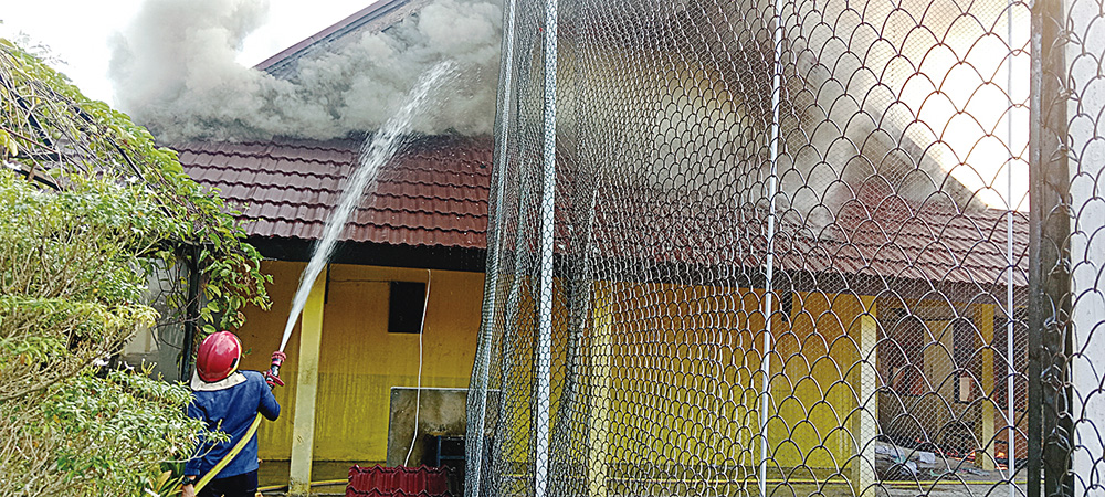 Benar saja, asap tebal yang terlihat dari pinggiran jalan itu berasal dari SMKN 1 Telukkuantan. Tepatnya dari arah bangunan kantin sekolah. Lalu sijago merah menyambar ruang praktik siswa yang tidak jauh dari kantin.