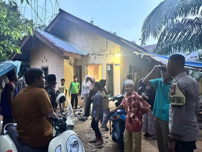 Suasana rumah duka anak tenggelam di sungai Kuantan Sabtu (30/8/2025) sore di Desa Pulau Busuk Jaya Kecamatan Inuman. (Polres Kuansing untuk Riaupos.co)