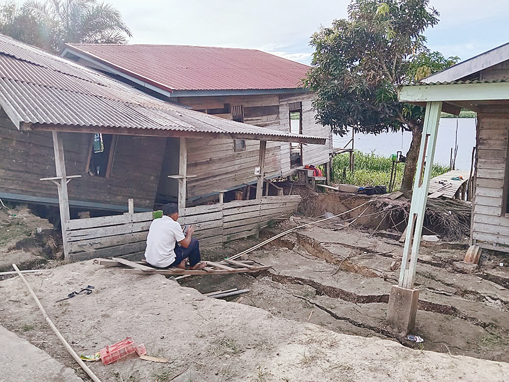 Kondisi ini tentunya menjadi perhatian Pemerintah Kabupaten (Pemkab) Pelalawan. Pasalnya, dinding, lantai, dan panggung bangunan bermaterial kayu itu sudah mengalami keretakan dan nyaris terbelah serta ambruk akibat pengikisan pantai di Sungai Kampar akibat hantaman gelombang, arus dan pasang surut yang terjadi secara terus menerus hingga terdampak ke permukiman masyarakat.