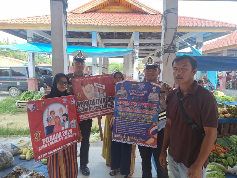 PELALAWAN (RIAUPOS.CO) – Patut di apresiasi aksi personil Satlantas Polres Pelalawan lakukan blusukan di lokasi pasar dalam menyampaikan pesan Kamtibmas tentang Operasi Zebra tahun 2024 di masa tahapan Pilkada tahun 2024 di Kabupaten Pelalawan. Berlokasi di Pasar Sabtu Desa Kiyap Jaya Kecamatan Bandar Seikijang Kabupaten Pelalawan, Senin (14/10/2024).