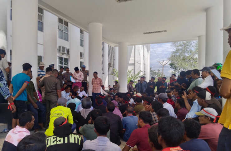 BAGANSIAPIAPI (RIAUPOS.CO) – Puluhan nelayan yang tergabung dalam Aliansi Masyarakat Rohil menggelar aksi unjuk rasa di depan Kantor DPRD Rohil, Batu Enam, Bagansiapiapi, Selasa (30/9). Mereka datang sekitar pukul 11.30 WIB dengan membawa tuntutan utama: kesulitan mendapatkan solar untuk melaut.