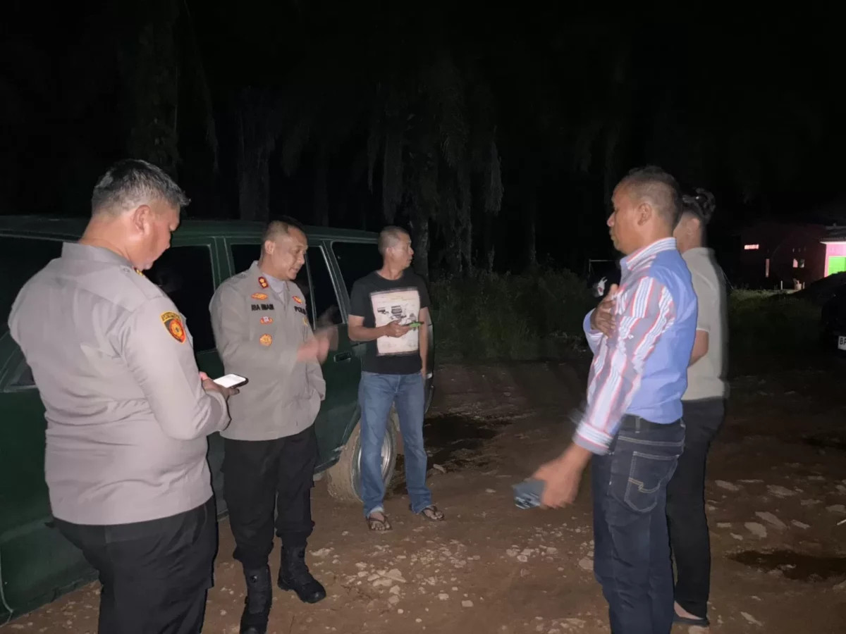 Kapolres Rohil AKBP Isa Imam Syahroni dan sejumlah perwira berada di lapangan pasca terjadinya bentrok di daerah Balai Jaya, Senin (20/10/2025) malam. (POLRES ROHIL)
