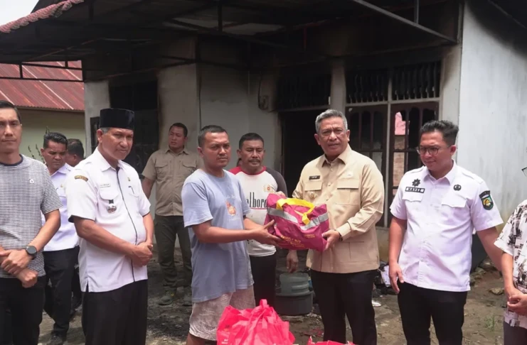 Bupati Rokan Hulu, Anton ST MM, turun langsung ke lokasi pada Rabu (1/4) untuk meninjau kondisi sekaligus menyerahkan bantuan kepada korban.