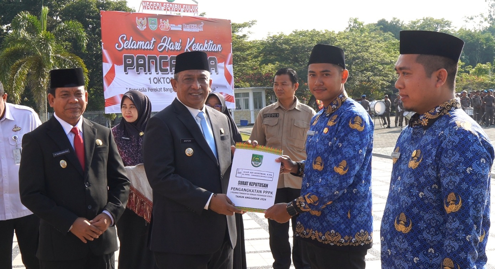 Hal ini ditegaskan Bupati Rokan Hulu, Anton ST MM, usai menyerahkan SK Bupati kepada 529 PPPK Tahap II Tahun Anggaran 2024. Penyerahan SK tersebut dilakukan bersamaan dengan upacara peringatan Hari Kesaktian Pancasila tingkat kabupaten di halaman kantor bupati, Senin (6/10).