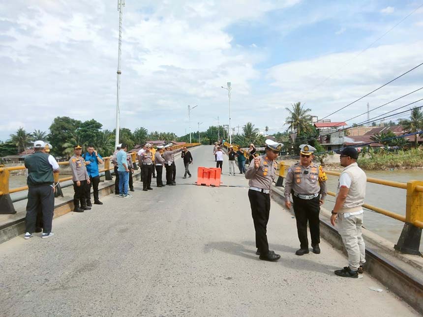 Jembatan ini berada tepatnya di Desa Suka Damai, Kecamatan Ujung Batu Kabupaten Rohul yang mengalami kemiringan cukup signifikan. Dalam peninjauan lapangan tersebut, Dirlantas Polda Riau didampingi Kabid Bina Marga Dinas PUPRPKPP Riau Teza Darsa, beserta PJU Ditlantas Polda Riau, Kapolres Rohul AKBP Budi Setiyono SIK MH, Kasat Lantas Polres Rohul AKP Tatit Rizkyan Hanafi STK SIK, Kapolsek Ujung Baru AKP Robby Hidayat.