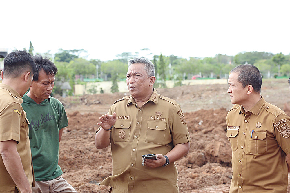 Bupati Rohul Anton ST MM, Selasa (12/8), meninjau langsung ke lapangan untuk memastikan kondisi lahan seluas lebih kurang 1,3 hektare yang kini sedang dilakukan land clearing dan penataan pembuatan jalan serta bundaran oleh Dinas PUPR Rohul dengan menyesuaikan master plant Komplek Islamic Center Rohul.