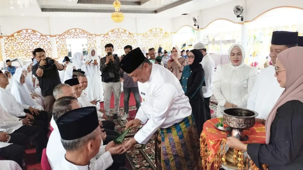 Rokan Hulu Lepas 56 JCH Anggota Korpri, Bupati Rohul Pesan Jaga Kesehatan dan Nama Baik Daerah Engki Prima Putra Jumat, 17 Apr 2026 16:58 WIB Lepas 56 JCH Anggota Korpri, Bupati Rohul Pesan Jaga Kesehatan dan Nama Baik Daerah Bupati Rohul Anton melakukan proses tepuk tepung tawar saat melepas keberangkatan 56 JCH Anggota Korpri menunaikan ibadah haji ke tanah suci di Pendopo Rumdis Bupati, Jumat (17/4/2026). (Engki Prima Putra/Riaupos.co)