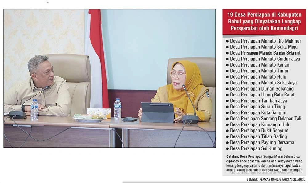 ROKAN HULU (RIAUPOS.CO) – Sebanyak 19 desa persiapan di Kabupaten Rokan Hulu (Rohul) kini tinggal menunggu penetapan kode desa dari Menteri Dalam Negeri sebagai syarat menjadi desa definitif.