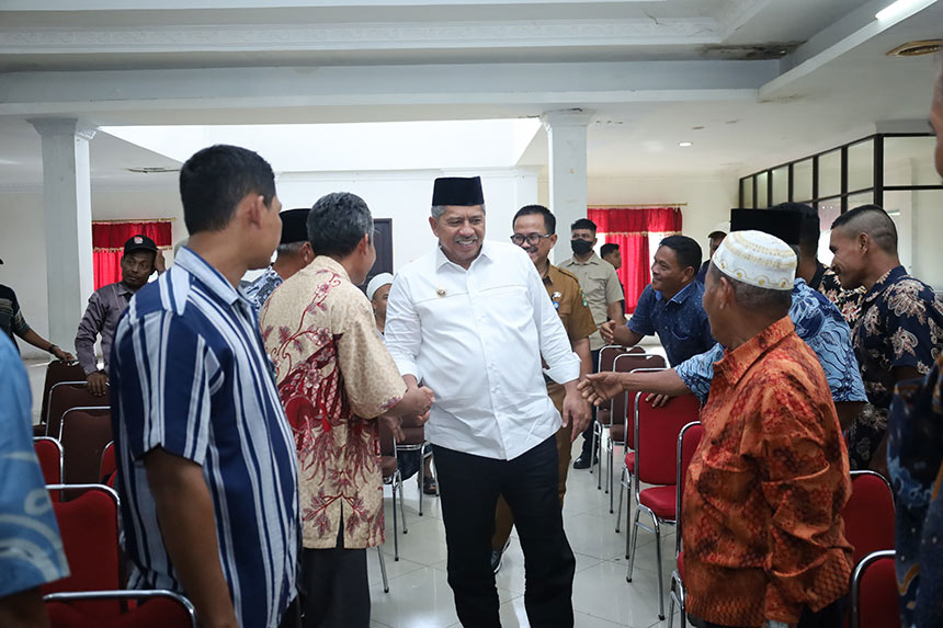 Bupati Siak Alfedri bersalaman dengan peserta saat menutup acara peningkatan kapasitas Lembaga Pemberdayaan Masyarakat (LPM) Kabupaten Siak 2024 di Siak, Selasa (2/7/2024). (Diskominfo Siak untuk Riau Pos)
