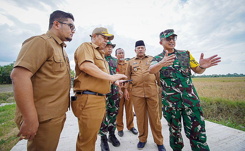 Bupati Siak Alfedri bersama Asisten Teritorial KSAD Mayjen TNI Joko Hadi Susilo SIP dan Dandim Siak Letkol Arh Riyanto Budi Nugroho, Kasdam l/BB Brigjen TNI Refrizal meninjau pelaksanaan TTMD ke-119 2024 di wilayah Kodim 0322/Siak, Selasa (5/3/2024). (diskominfo siak untuk riaupos.co)