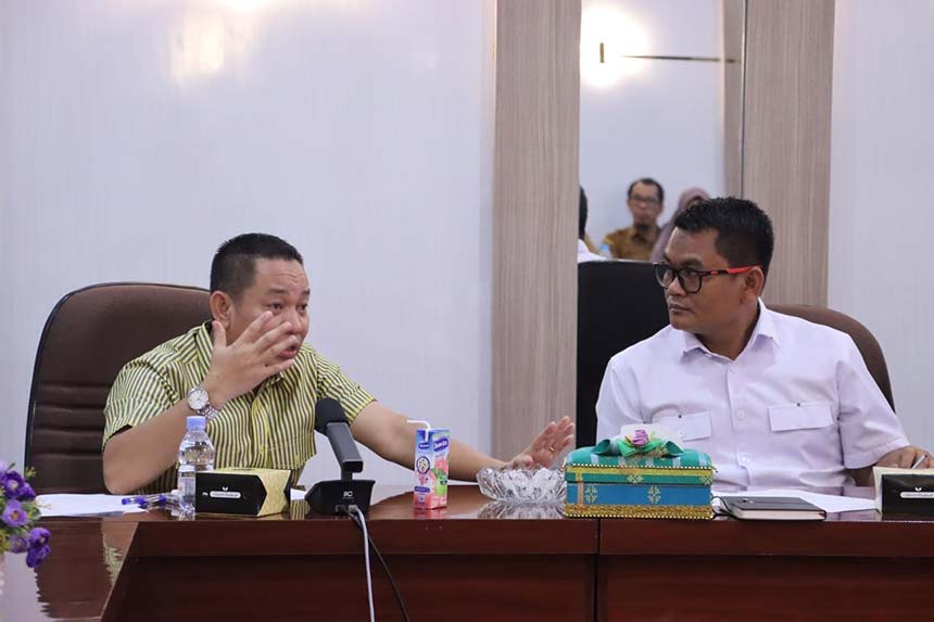 Ketua DPRD Siak Indra Gunawan memimpin rapat dengar pendapat lintas fraksi dengan Pemkab Siak di Kantor DPRD Siak terkait gaji April ASN dan honorer yang belum dibayarkan, Senin (14/4/2025). MONANG LUBIS/RIAU POS