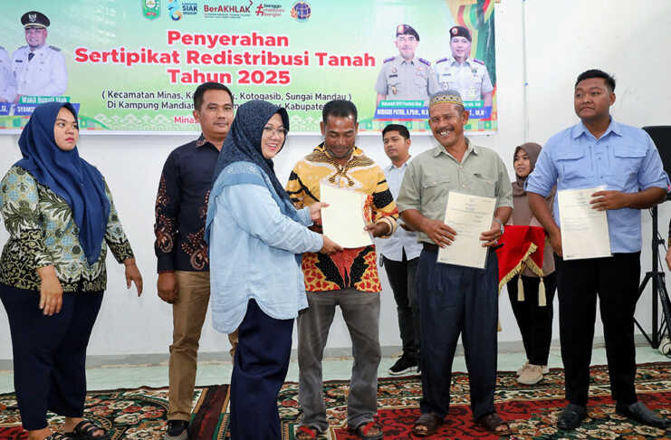 Sementara itu, Kepala Kantor Pertanahan Kabupaten Siak, Martin SST MH, menyampaikan bahwa penyerahan SHM TORA ini adalah yang pertama dilakukan di Riau pada tahun 2025. Ia menekankan bahwa program TORA tidak hanya tentang sertifikat tanah, tetapi juga bentuk nyata kehadiran negara di tengah masyarakat.