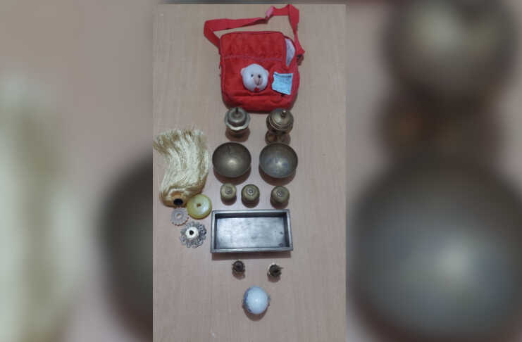 Gerak-gerik keduanya yang mencurigakan membuat petugas keamanan curiga. Setelah diperiksa, tas merah yang mereka bawa ternyata berisi benda-benda peninggalan bersejarah.