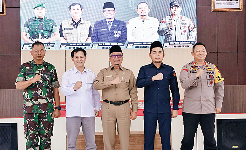 Sekda mengucapkan terima kasih kepada Kapolres Asep, Dandim 0322/Siak Riyanton, Ketua KPU dan Ketua Bawaslu Siak yang telah bersinergi menyukseskan Pemilu 2024, sehingga berjalan lancar dan kondusif.